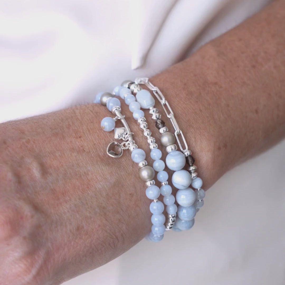 Handcrafted with mind and meaning. At Beblue Bijoux, we believe bracelets are the most essential piece of jewelry. Our Bracelets capture the essence of everlasting beauty and refined craftsmanship. From 14kt Gold Vermeil to Sterling Silver, our timeless bracelets are designed with fine stones and freshwater pearls to complement any set, whether it's for a special occasion or everyday elegance. Elevate your look and create unforgettable moments with our elastic bracelets, pearl bracelets, bracelets with clasps stackable bracelets & charm bracelets collections.