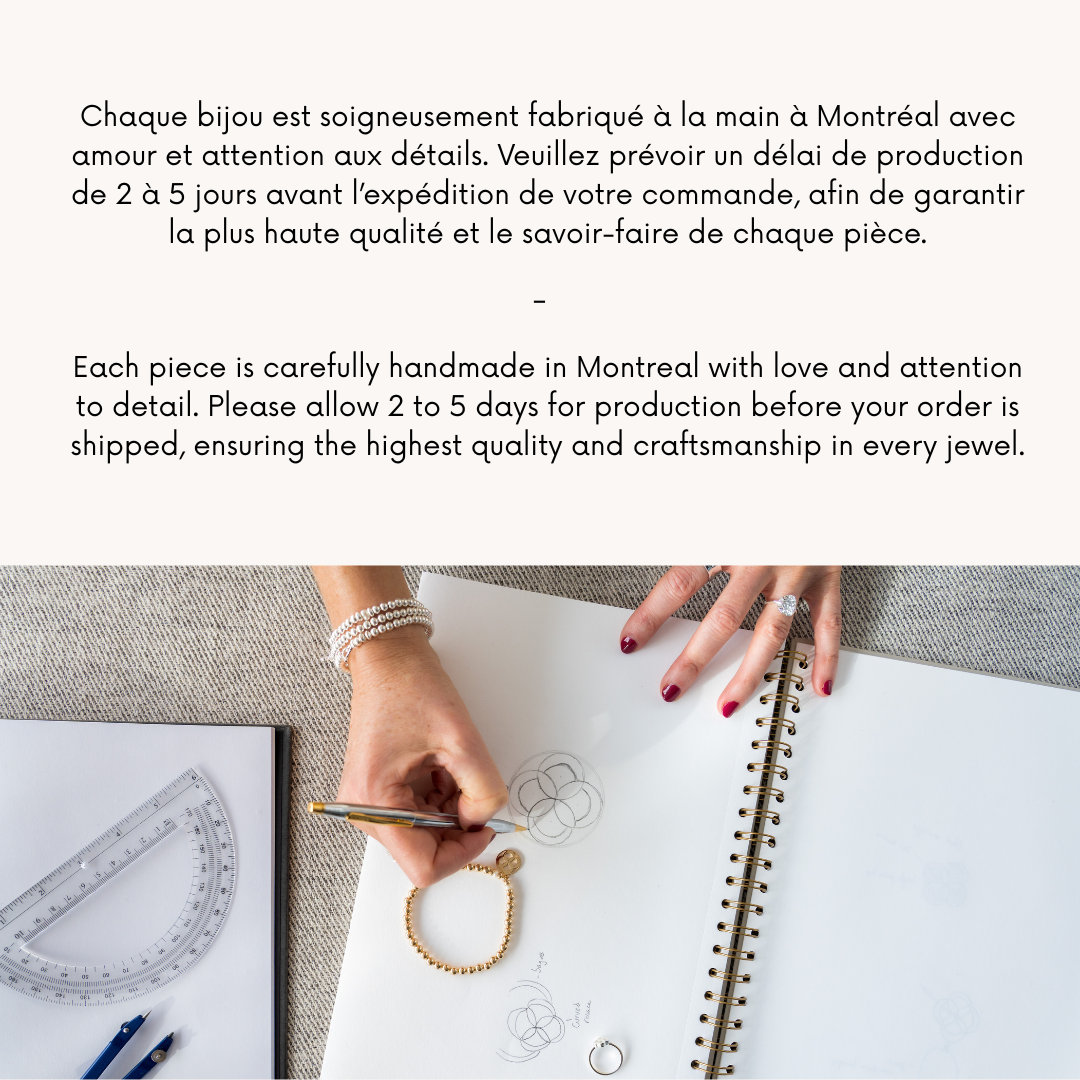Sterling silver, 14kt gold vermeil, agates, quartz, jasper and fine stones are combined with style and intention in our Montreal workshops.