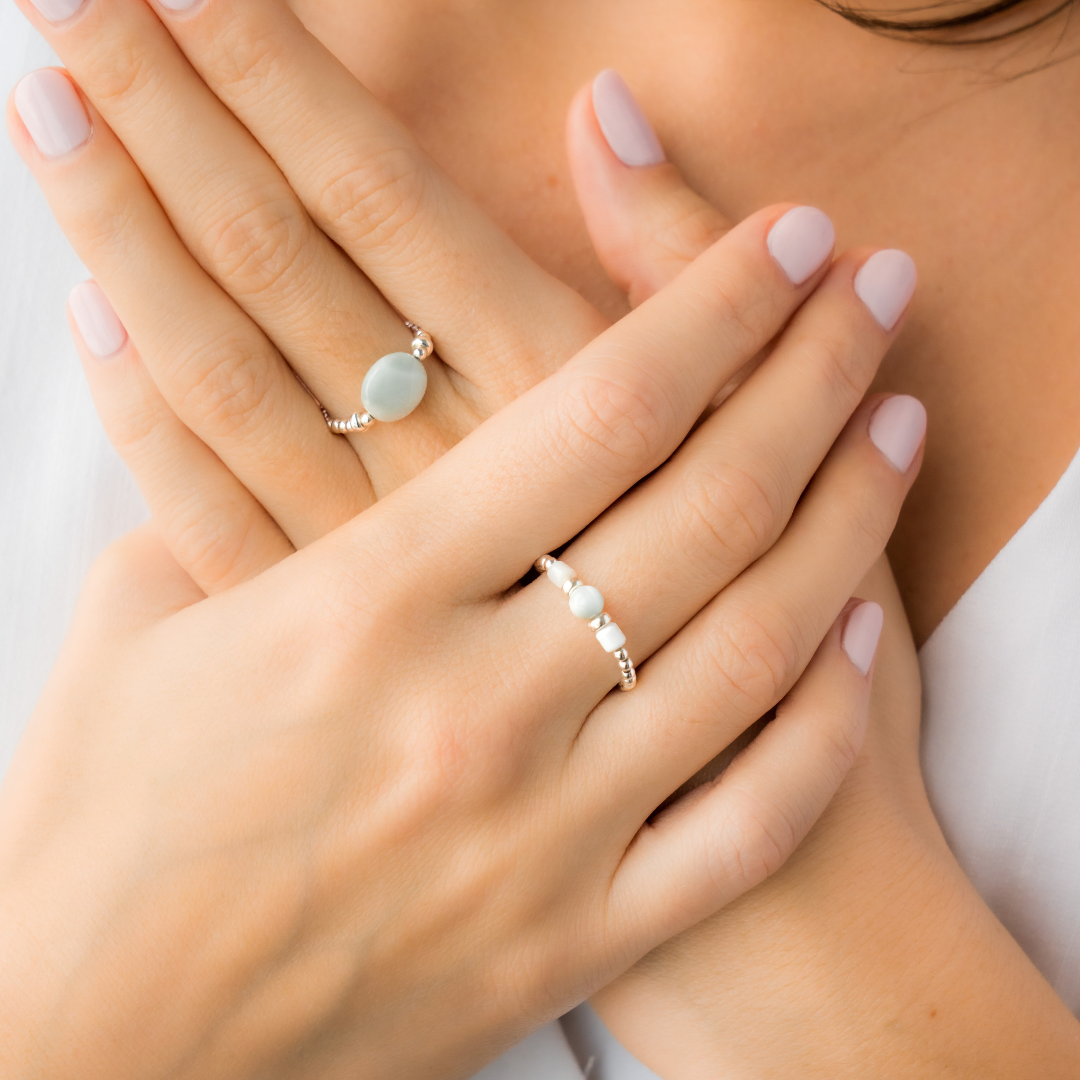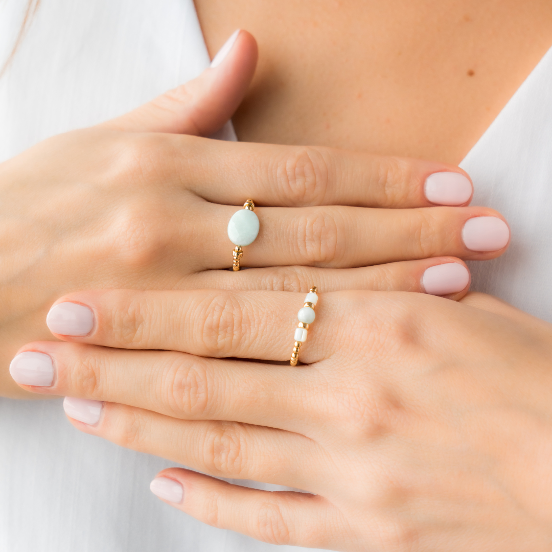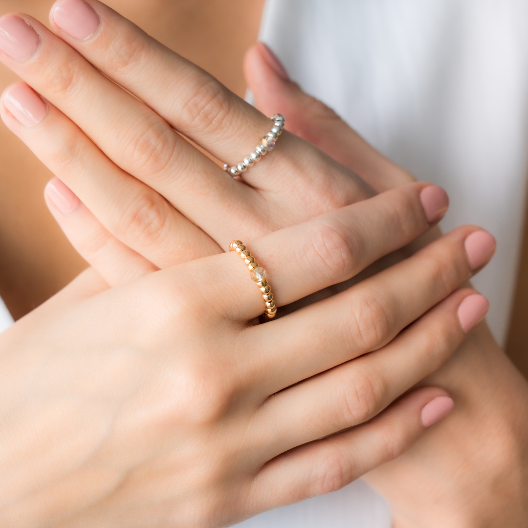 Discover Beblue Bijoux's handcrafted elastic rings, designed for comfort, elegance, and everyday wear. The flexible elastic bands provide a perfect fit, ensuring effortless style without compromising on sophistication. From delicate and dainty designs to bold statement pieces, our sterling silver, 14kt gold vermeil, and semi-precious stone rings cater to every taste. Discover our stacking rings now.