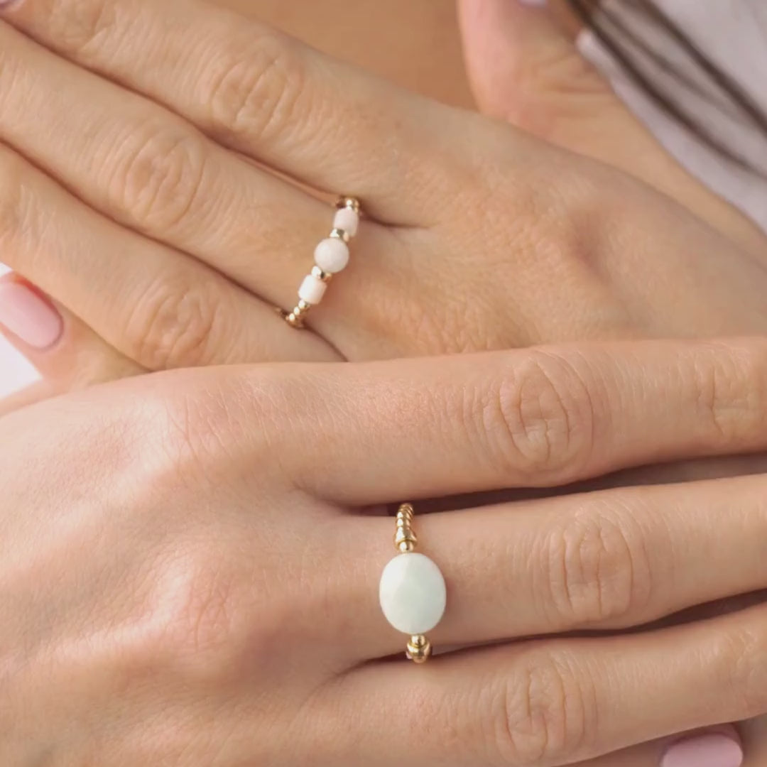 Women's Beaded Elastic Rings 14kt Gold Vermeil
