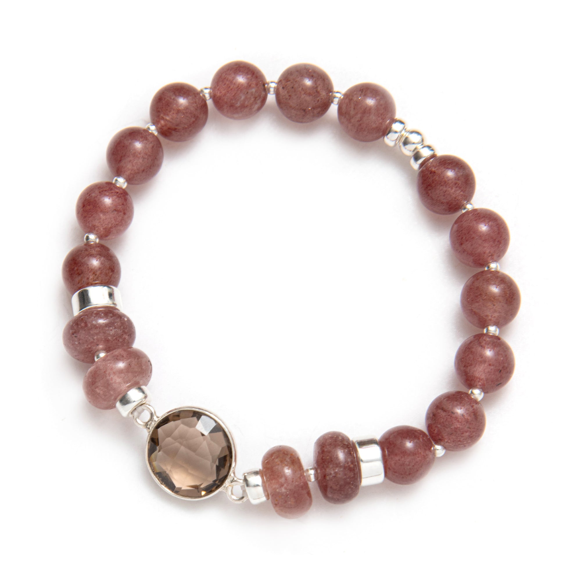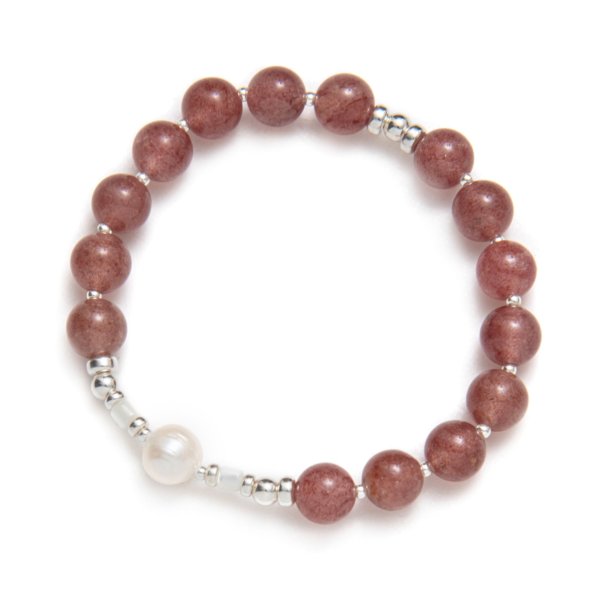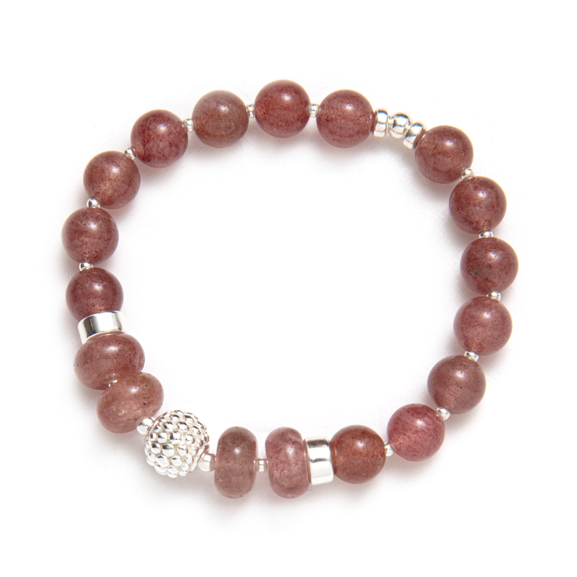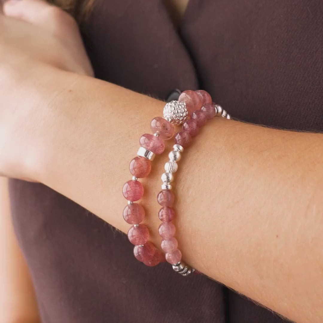 This capsule was imagined in cherry quartz, a soft shade that sits on the skin like a gentle compliment. Elastic bracelets you slip on and stack, necklaces you layer, the Beblue rosace charm set with CZ and textured metal details. Each piece was designed as a small act of kindness towards yourself, a quiet sentence that says: