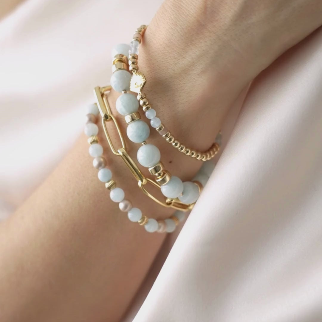Discover our selection of stackable bracelets that will add a touch of Color to your jewelry collection. Our mother-of-pearl bracelets in shades of white, cream or champagne are a must have. Pick YOUR color !