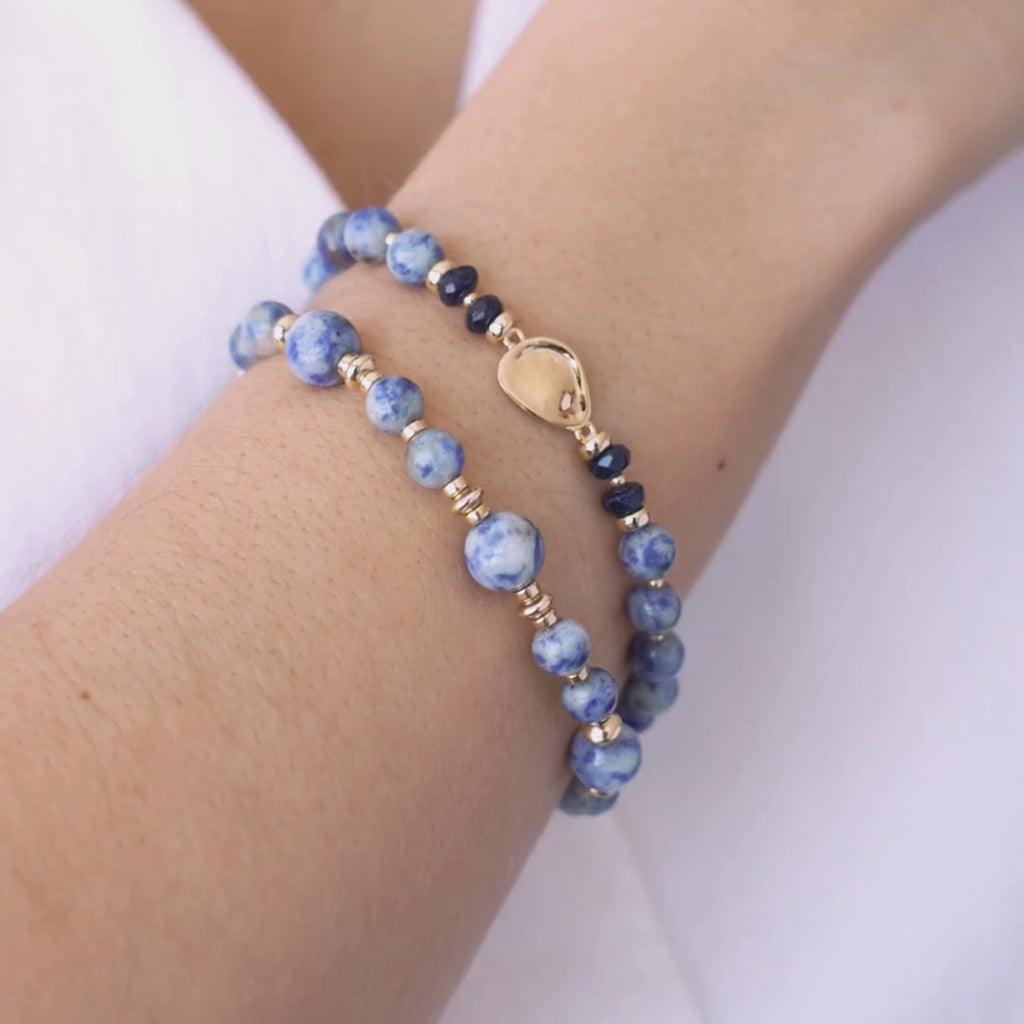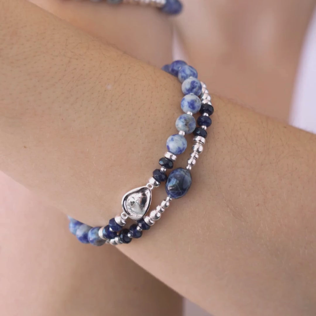 Part of the LITHOS collection, this bracelet is crafted with Brazilian blue sodalite beads, known for their deep, calming tones and natural variations. Each stone is unique, reflecting the beauty of individuality shaped over time.
