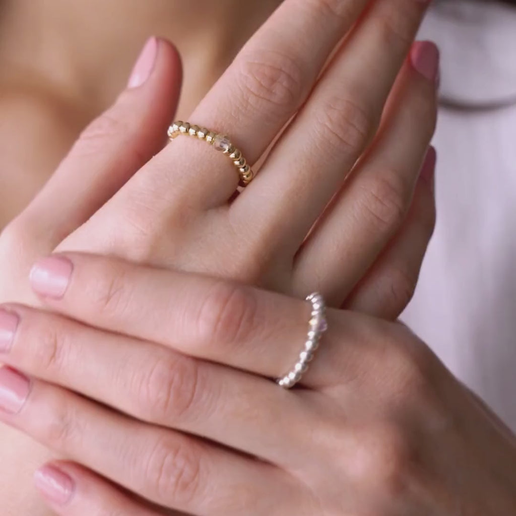 La bague Be Light est une pièce délicate et éclatante conçue pour capter la lumière et l'énergie positive. Sa bande élastique, disponible en argent sterling ou en vermeil d'or 14 carats, s'adapte confortablement à tous les doigts. Le cristal jaune à facettes ajoute un éclat subtil, rappelant les jonquilles lumineuses et douces du printemps.