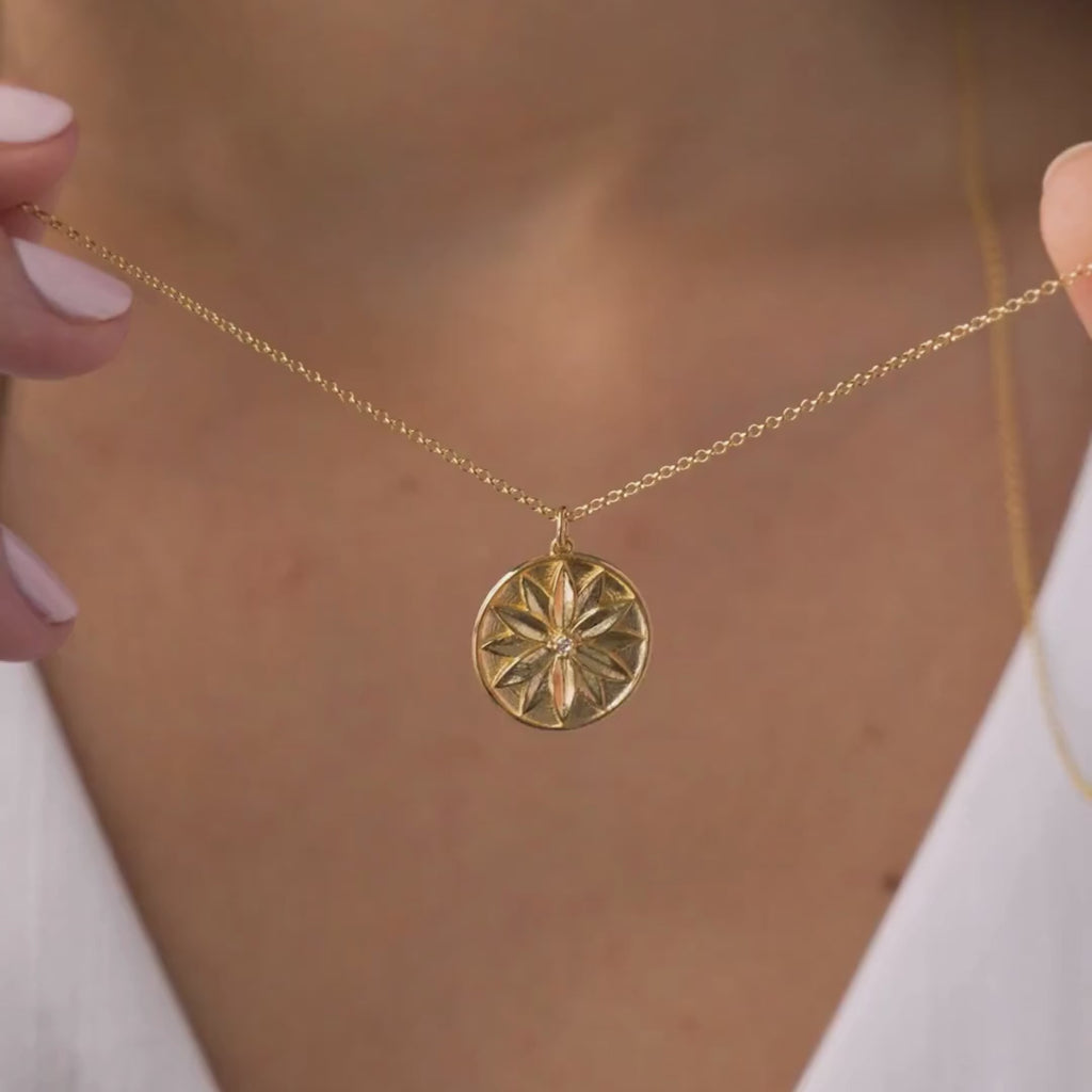 Ce collier est doté d'une chaîne ajustable jusqu'à 81 cm, ce qui le rend compatible avec toutes les encolures. Il est orné d'un pendentif tournesol serti d'un zircon étincelant en son centre, ajoutant une touche d'élégance et de brillance.