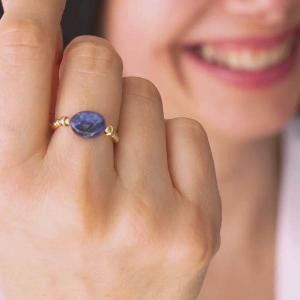 Chaque élément est fabriqué en argent 925 ou en vermeil d'or 14 carats, rehaussant les tons naturels profonds de la sodalite tout en conservant une finition raffinée et lumineuse.