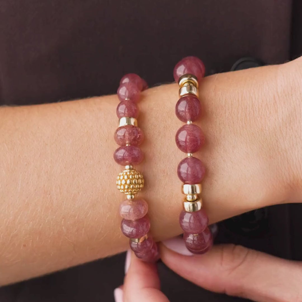 The bracelet in cherry quartz is highlighted by a central charm that adds texture and character to your stack. Designed to combine simplicity and elegance, it brings style to your layering.