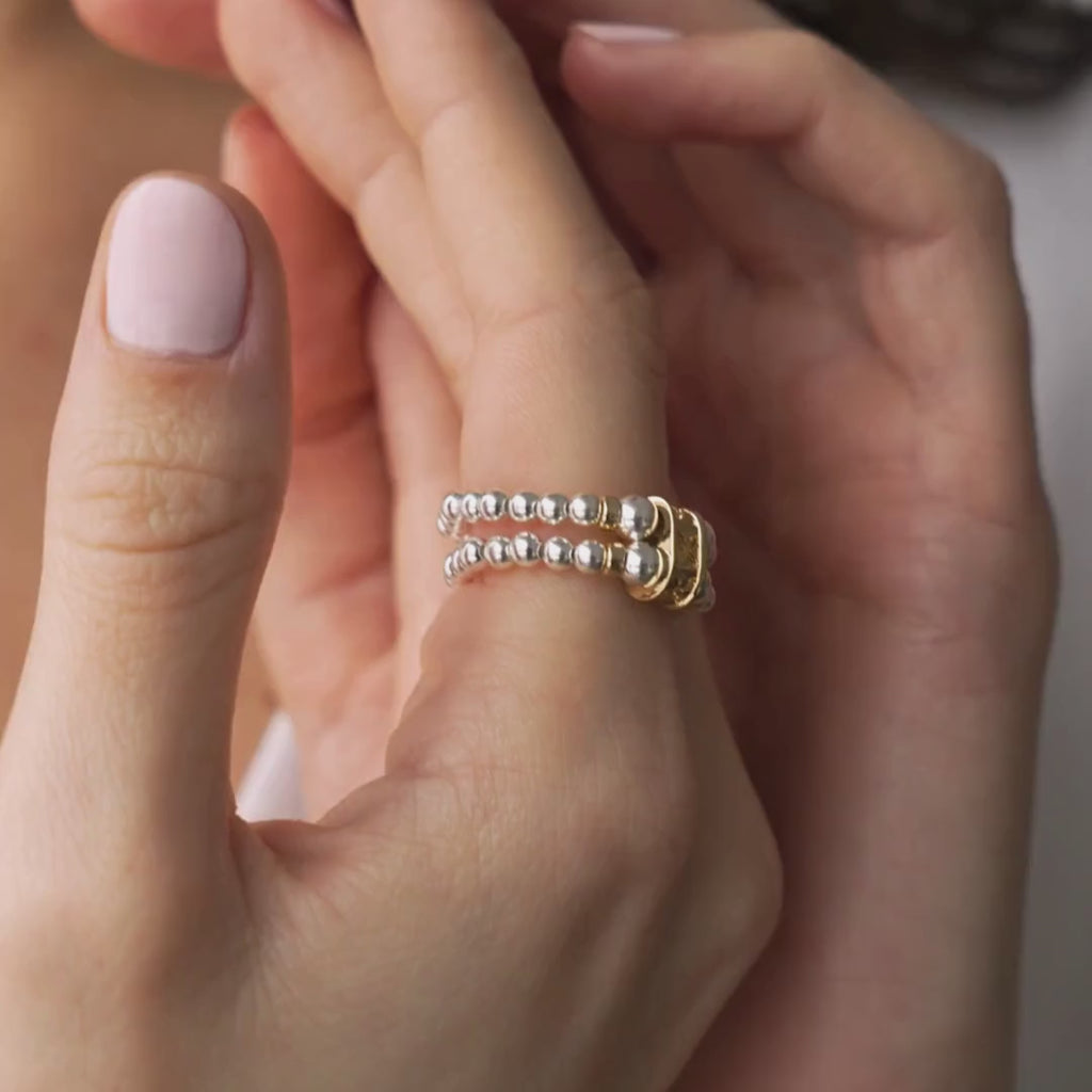 A modern and refined double elastic ring, crafted in sterling silver and 14 K vermeil for a subtle, luminous contrast. Its flexible design comfortably adapts to your finger while adding a contemporary, elegant touch.